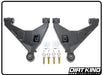 Additional features on the Dirt King lower control arms include recessed shock mounting with a drain hole and accepts all types of shocks and struts. It also accommodates for bump stops and limit straps. Progressive steering stops limit the steering throughout the suspension cycle to allow for maximum steering without over articulating the CV's or tie rods. This product is a direct bolt on application with all necessary hardware included. The arms are coated with a durable black powder coat and all the wearable components are replaceable for a product that will last a lifetime.